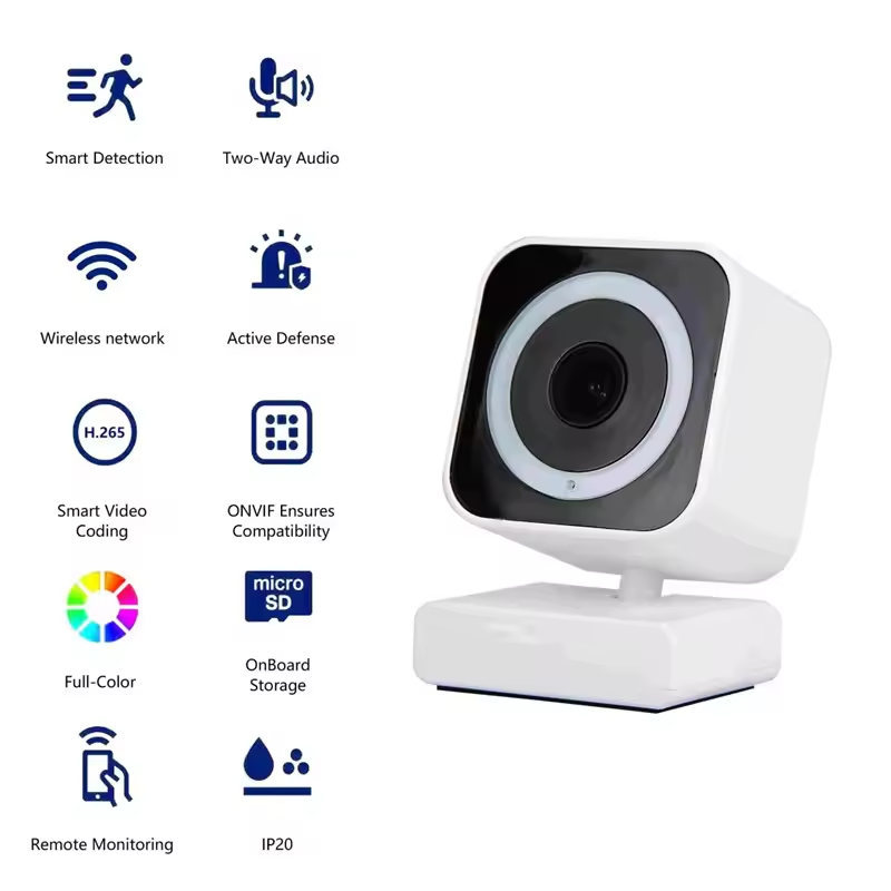 This smart security camera offers 3 MP/4 MP HD imaging and 10-meter infrared night vision for 24/7 clear monitoring, plus two-way voice for real-time communication. It supports humanoid & motion detection with APP alarm pushes, and provides flexible storage via 256GB TF cards or cloud service, along with privacy masking for sensitive area protection. Standard configurations include a 3.6MM lens and Bluetooth connection; dual-band 2.4GHz/5GHz Wi-Fi is available for an extra 0.5 USD. It can also be customized to work with Google Hub, Alexa and other smart screen speakers for seamless smart home integration.