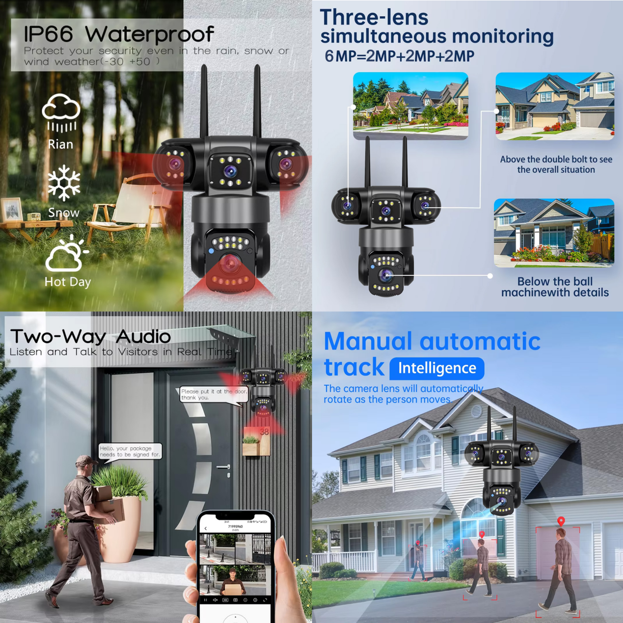 This 3*2MP Triple-Lens PTZ Security Camera is designed with the core concept of “easy to use and reliable in security”. It fully meets the actual needs of users in all aspects, from image quality, connection, and protection to storage. No complicated debugging is needed, and it can be used right out of the box. With a 1-year warranty service, there is no need to worry about after-sales issues. It truly makes “security protection” easy and efficient.