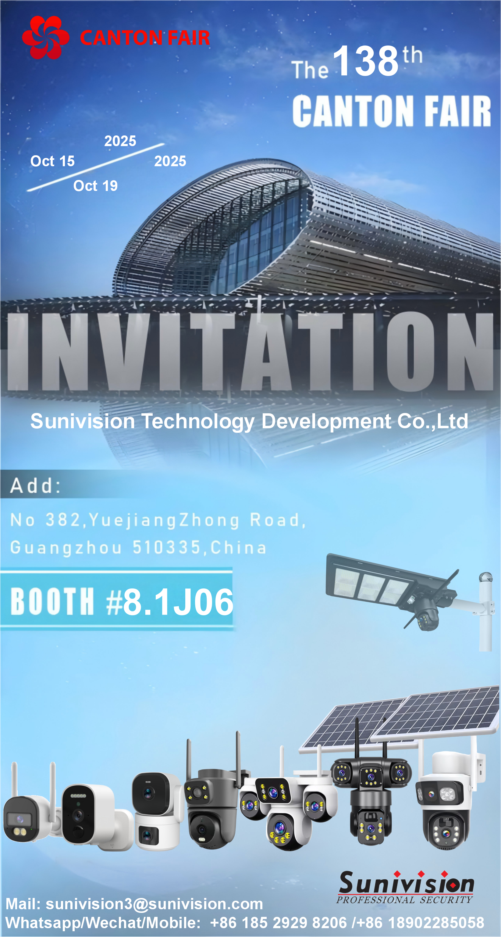 – Sunivision Technology Development Co., Ltd., a dedicated provider of professional security systems, is pleased to announce its participation in the 138th China Import and Export Fair (Canton Fair). The company invites partners and clients from around the world to visit its exhibition booth from **October 15th to October 19th, 2025**.
