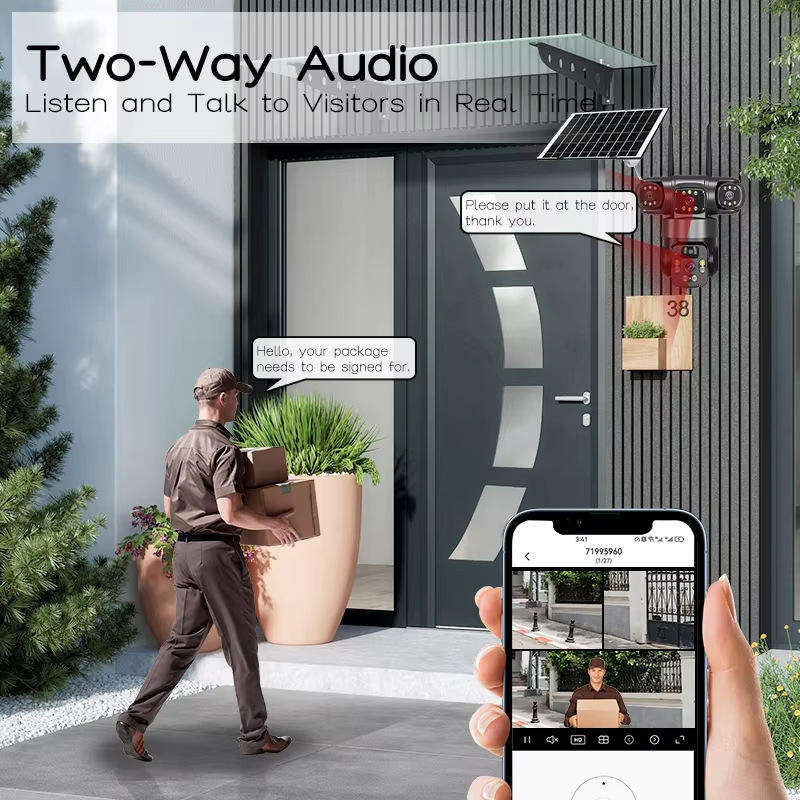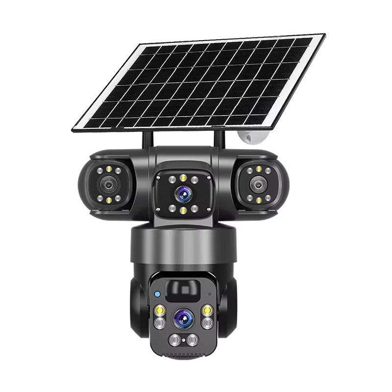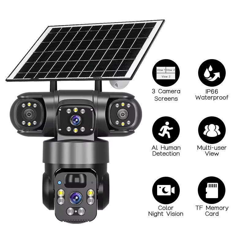 Three Lens Solar Security Camera with Color Night Vision