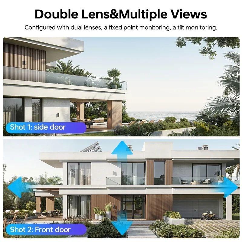 Lens 2 (Tilt Monitoring): Effortlessly pan and tilt the second lens to cover a wider area, like your side door or hallway.