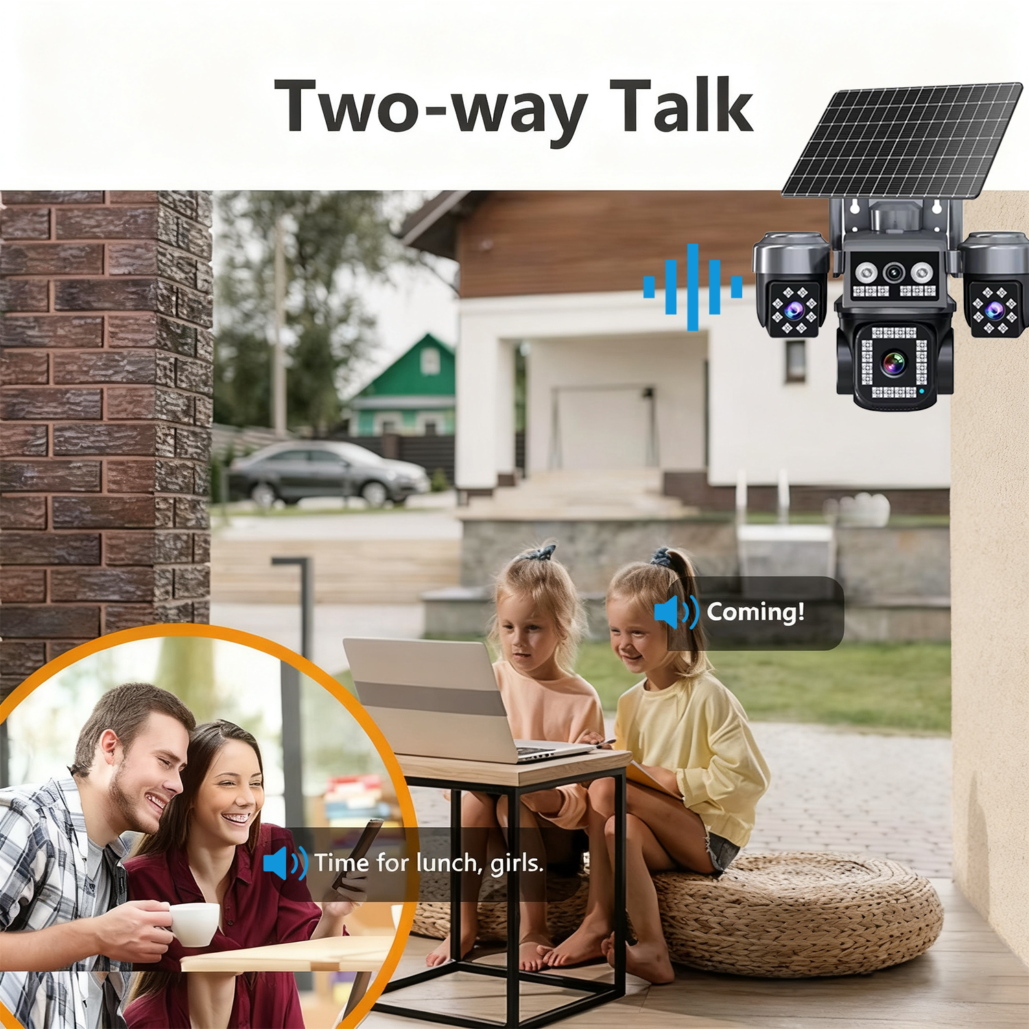 - Two-Way Audio Communication: Allows bidirectional voice interaction, enabling users to talk to people within the camera’s vicinity (e.g., family members, visitors) or deter potential intruders remotely.